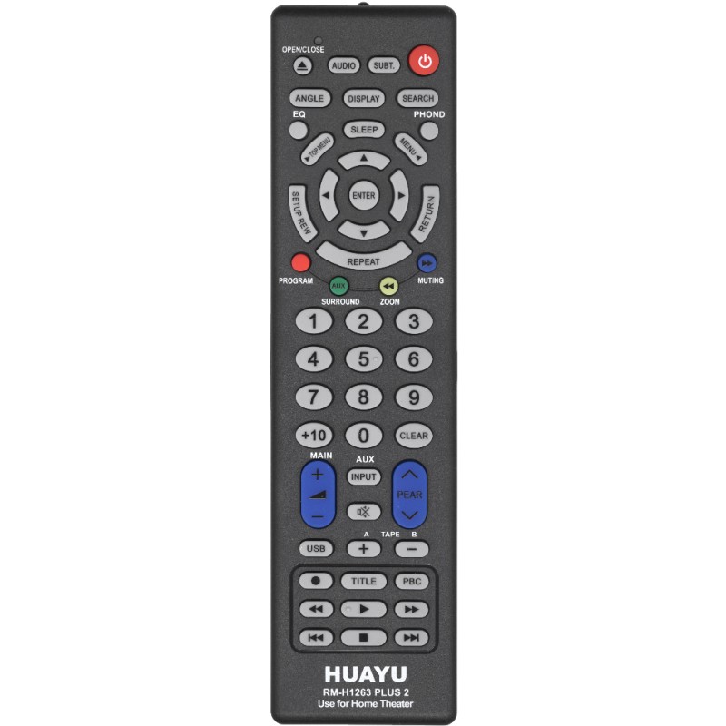 Универсальный пульт HUAYU RM-H1263 PLUS 2 для домашних кинотеатров, блюрей плееров (Blu-ray Disc player), AV system, АВ систем. ПДУ легко настроить, доступно 3 способа: ввод кода из таблицы, ручной перебор кода или автопоиск кода. Заменяет более 250 моделей пультов от брендов: Sony, Samsung, Toshiba, UBL, AKAI, LG, Pacific, LRIPL, PHILIPS, Sansui, Yamaha, Polytron, Qteac, Sharp, Opera, Anthem, JBL, Bose, Harman Kardon, Kenwood, Sanyo, Aawa, ANPM3 Player, BGM, Microsonic, F&D, I Ball, RR Intex, RR Mitsun, Phelips, RR Philps, Zebroniks, Panasonic, Pioneer, Aiwa, Cemex, LOGIK, Onkyo, Shomaker & Grandig Hom, Thomson, Yamaha, Avox, Fuze, Gaiam, Denon, JVC, Aurex, Strasser, Marantz, Qriom, Wintech,